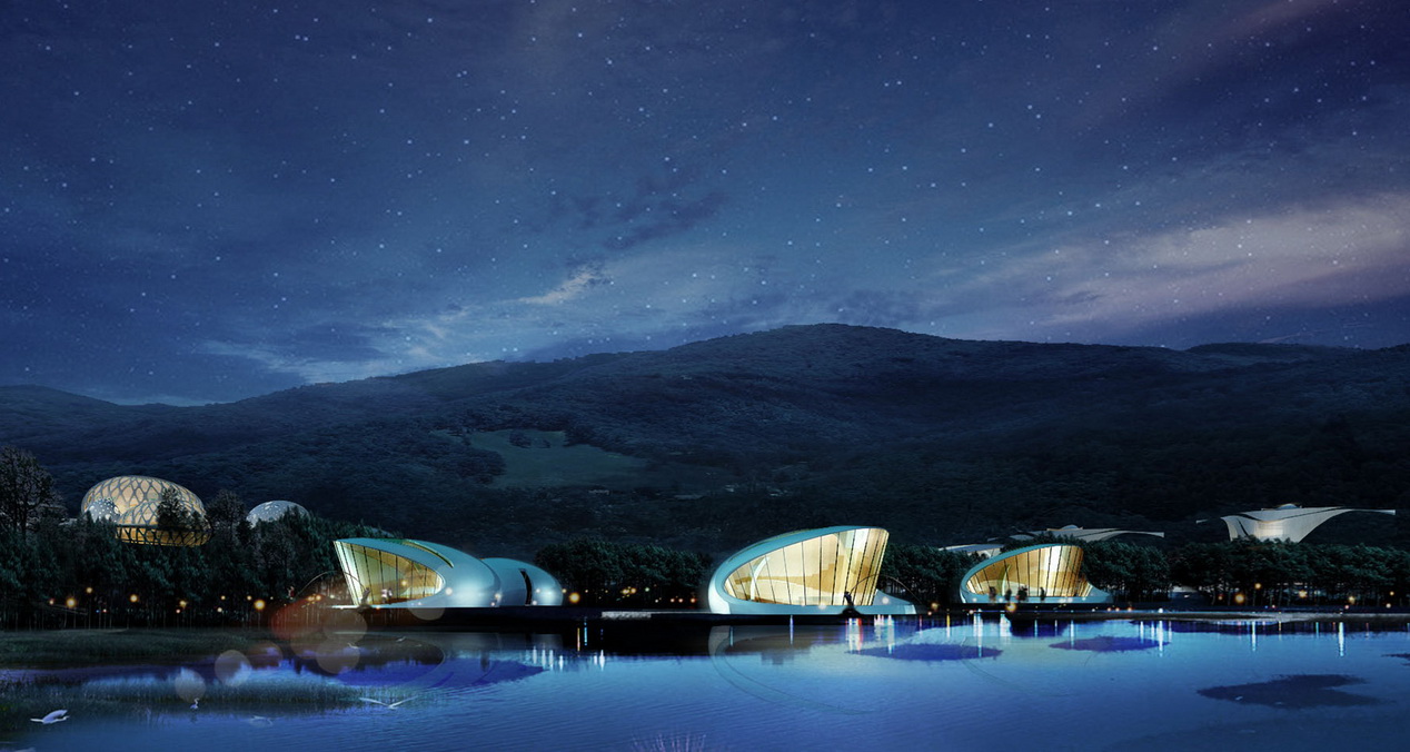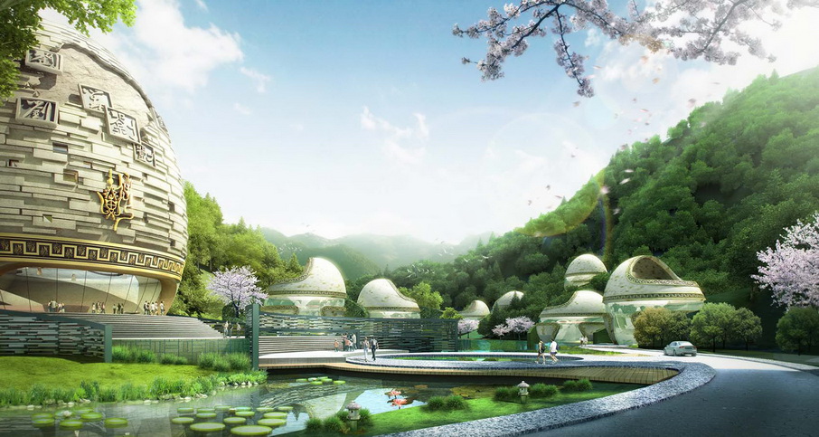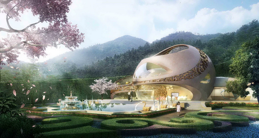 用全新的手法将诠释生命的艺术再次回归到生命的本源,以初生之态——卵,赋予建筑和自然界最完美而质朴的结合,将一个新的适合人类养生的净土世界重新诞生于蓝田。如蓝田初始——一念起而万物生。