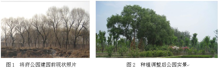 将府公园、朝来森林公园都同属于北京朝阳区隔离绿化带的一部分。将府公园位于朝阳区将台乡东部,东至东五环,南到亮马河,西靠京包铁路线,北至驼房营路,共分两期建设,总占地约58.43公顷;朝来森林公园位于朝阳区来广营乡,东至来广营北路,南临来新路,细至新北路(紧邻朝来农艺园),总占地面积53.28公顷。这两个公园的面积和现状情况非常相似,我们结合公园自身特点通过不同的设计手法对这两个公园进行了规划设计,通过这两个公园建成后效果的比较,对于如何规划设计北京郊野公园这个问题可得出一些有效的手法和原则。