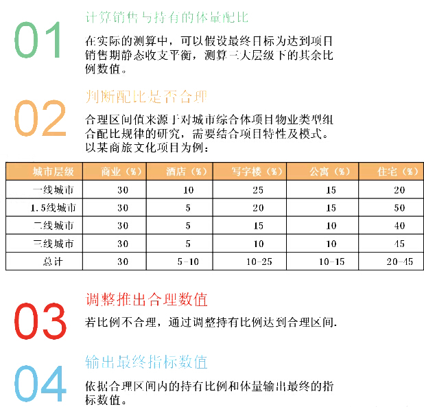 以上,是根据市场与开发主体作为两大因素选择定位的原则,但同时风险评估的过程是一个动态的过程,需要在丰满的理想与骨感的现实中找到最终方案,最为有效的方法与工具为多轮的经济测算,这里说的经济测算不仅是最后评估方案盈利水平的工具,更多的是通过对利润或现金流的要求,不断修正最终定位的产品配比与开发节奏: